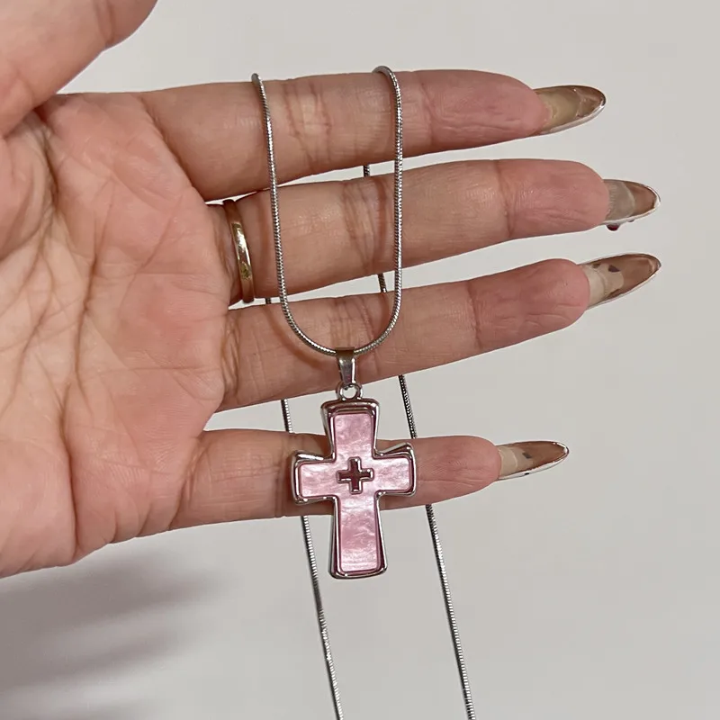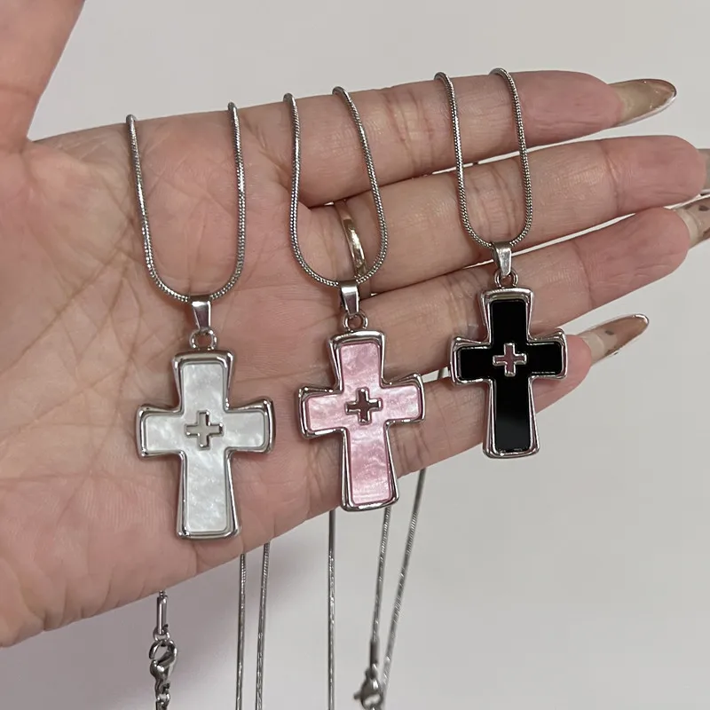 Y2K Gothic Grunge Cross Pendant Necklace Cyberpunk Aesthetic Jewelry